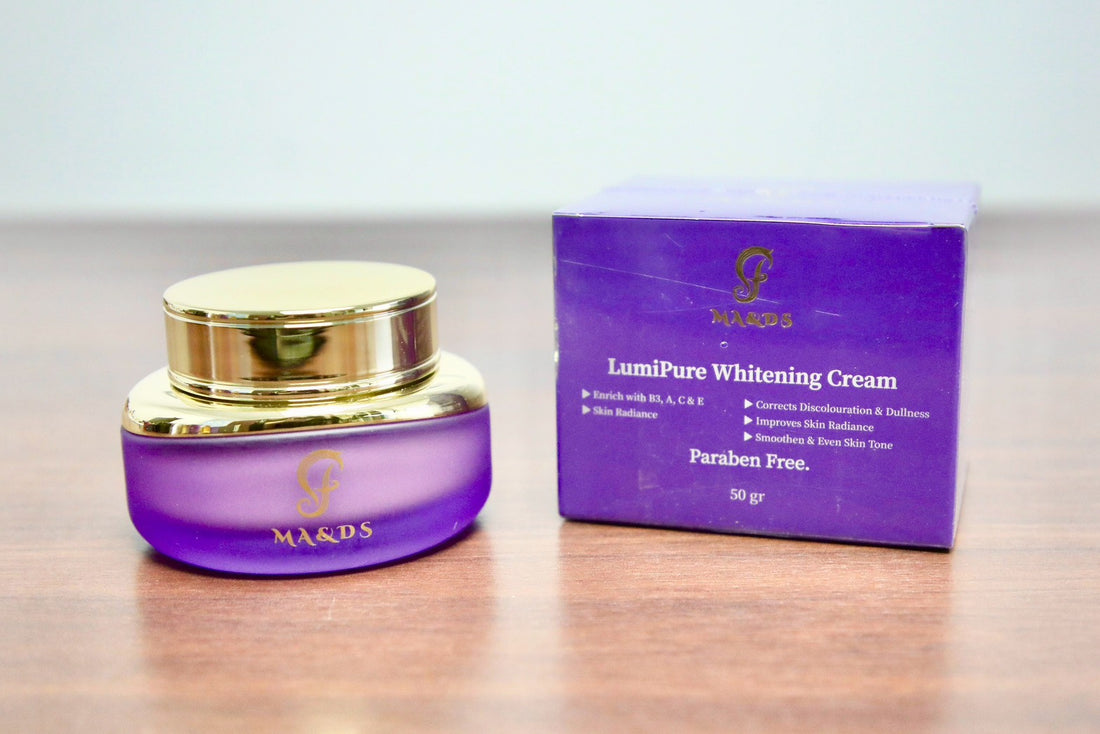 MA&DS ลูมิพิวร์ ไวท์เทนนิ่ง ครีม – 50 กรัม สว่าง กระจ่างใส บำรุง และปรับผิวให้สมบูรณ์แบบ ฟื้นคืนความเปล่งประกายตามธรรมชาติของผิวด้วยลูมิพิวร์ ไวท์เทนนิ่ง ครีม ครีมบำรุงผิวสูตรหรูเพื่อผิวกระจ่างใส...