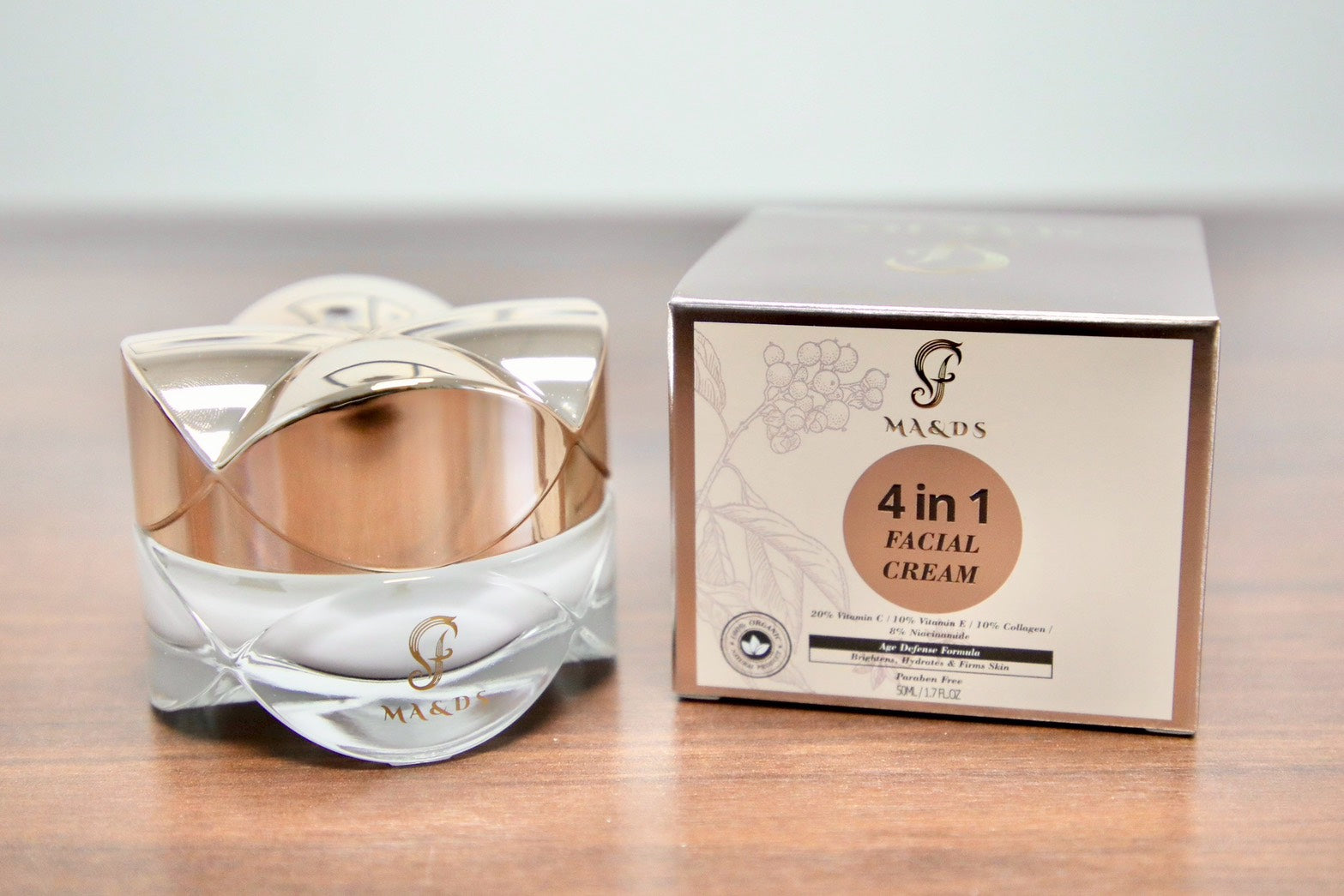 MA&DS ครีมบำรุงผิวหน้า 4-in-1 เป็นครีมอเนกประสงค์ที่ช่วยให้ผิวชุ่มชื้น กระจ่างใส และดูอ่อนเยาว์ ด้วยส่วนผสมทรงพลังจากวิตามินซี ไนอะซินาไมด์ คอลลาเจน และน้ำมันโจโจบา ครีมหลายประโยชน์นี้ช่วยลดเลือนจุดด่างดำ ปรับสีผิวไม่สม่ำเสมอ กระชับรูขุมขนกว้าง และลดเลือนเส้นริ้ว ครีมเนื้อบางเบา ซึมเร็ว ให้ผลลัพธ์ชัดเจนและอ่อนโยนเพียงพอสำหรับการใช้ทุกวัน